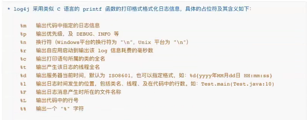 PatternLayout:最强大的格式化期,可以根据自定义格式输出日志,如果没有指定转换格式,就是用默认的转换格式。