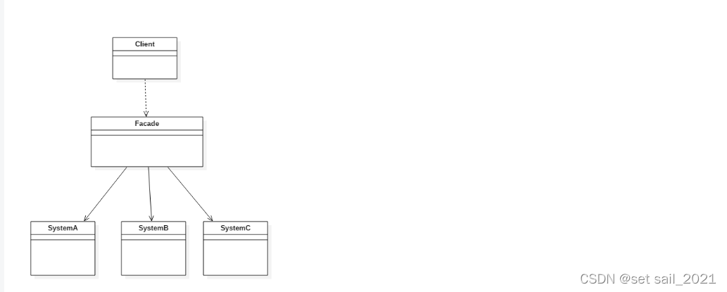客户端与门面系统直接通信,子系统不应该知道门面的存在,以为就是一个客户端。