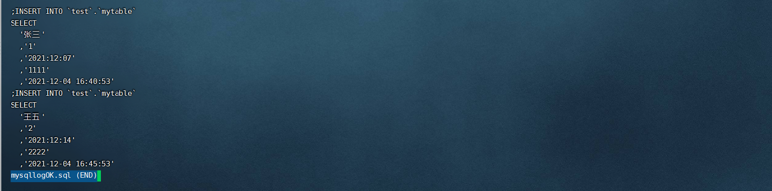 然后打开我们的mysqllogOK.sql文件如下: