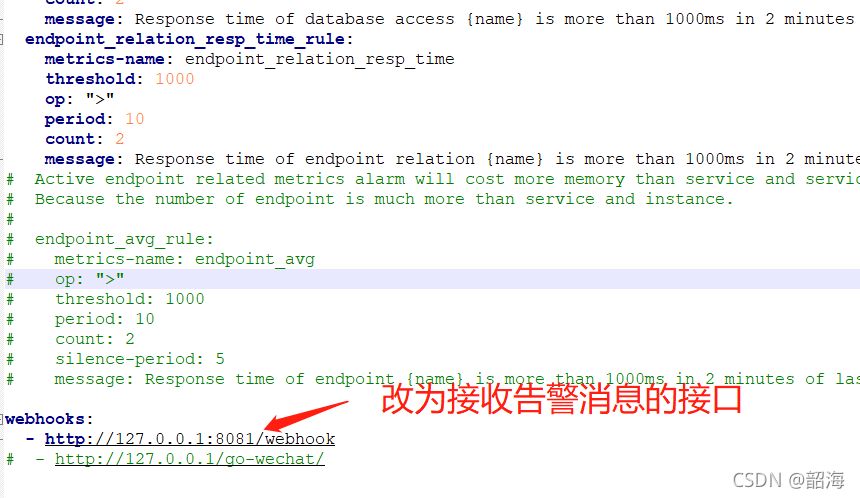 当我们的接口达到我们配置的告警规则时,就会调用我们配置文件中的webhooks接口