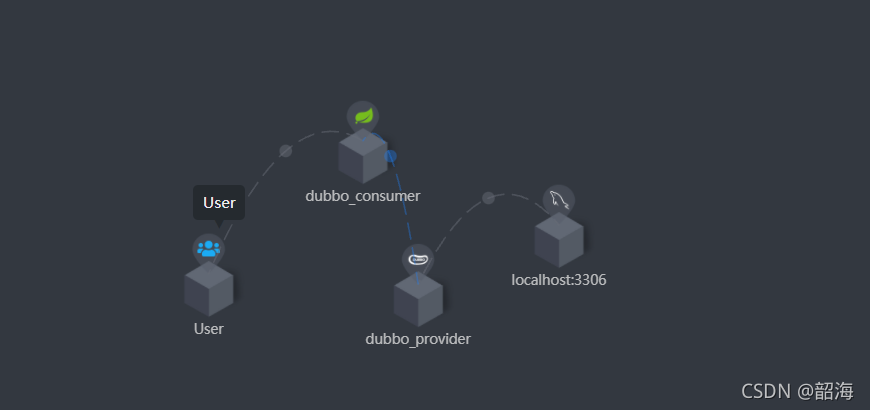 拓扑图中我们可以清晰的看懂我们的调用链路(用户->消费者->生产者->数据库):