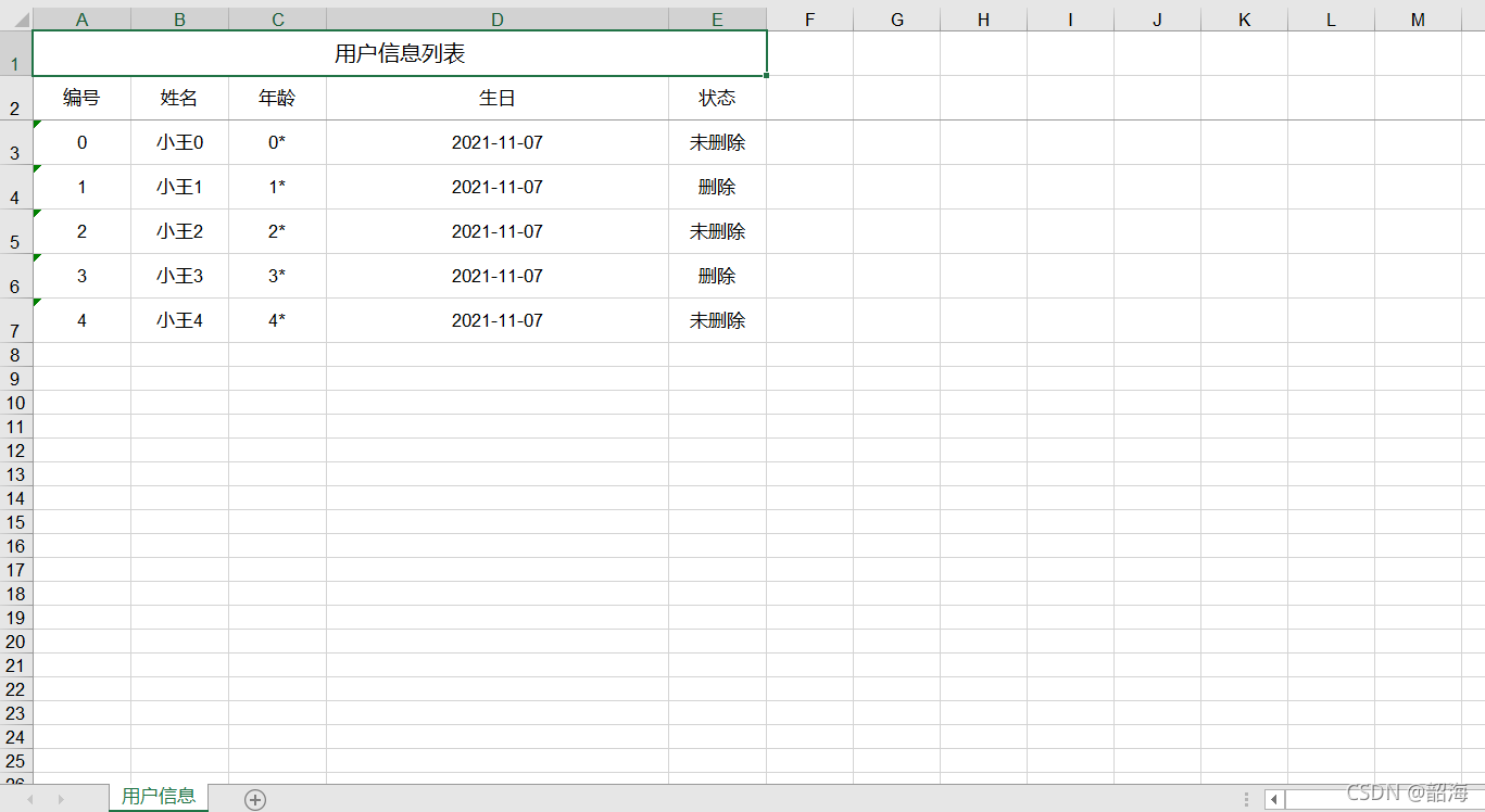 Workbook workbook  = ExcelExportUtil.exportExcel(new ExportParams("用户信息列表", "用户信息"), User.class, users);