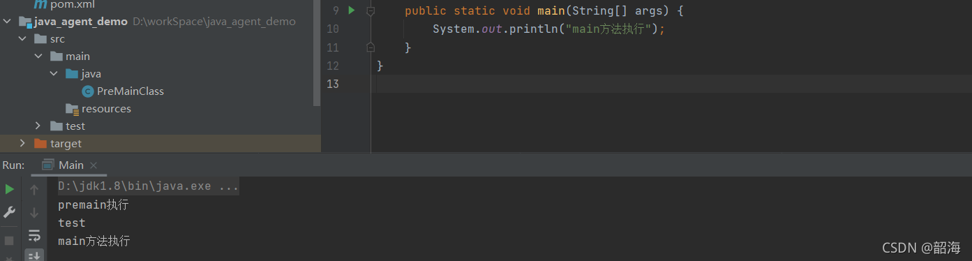 为了验证我们的猜想我们可以先写一个类打成jar包。然后再新建一个module用javaagent指定看执行流程。
