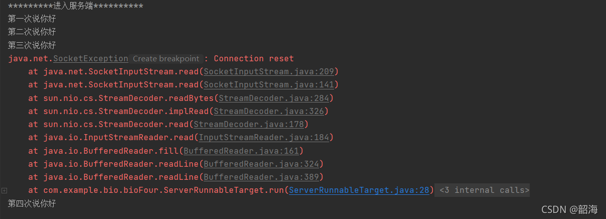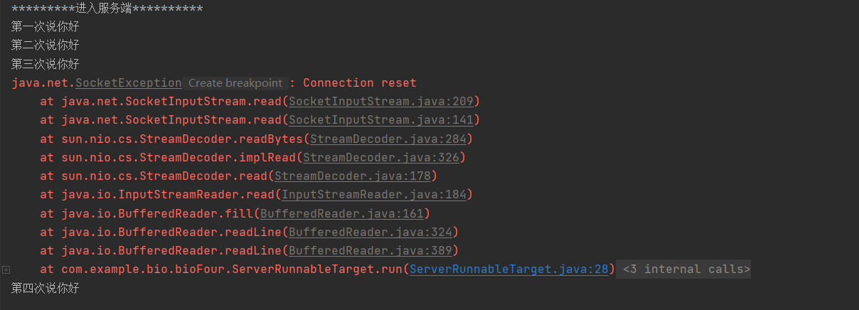 因为我们自定义的线程池只支持3个线程,所以我们的第四个线程进入了等待队列,但如果我们关掉了其中一个线程,第四个客户端的请求就会被请求到。