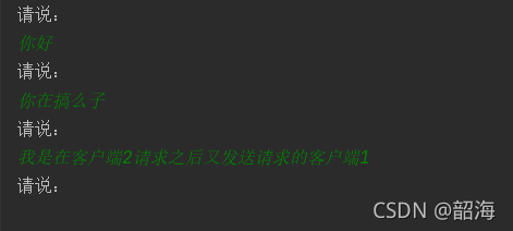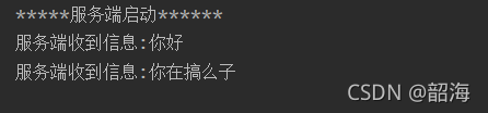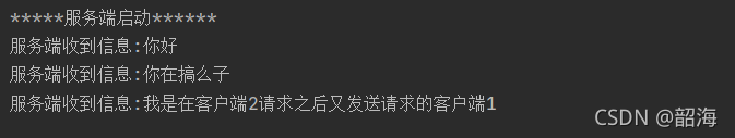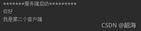 但是我们这样写,一个服务端只能接受一个客户端的消息。演示如下:
