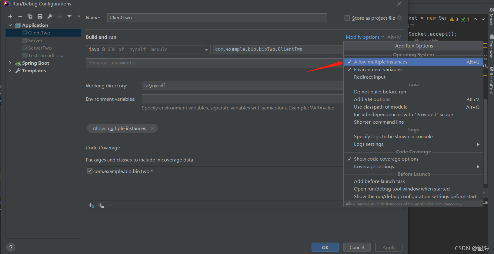 由此可见,当你启动第二个客户端的时候,请求socket的时候,服务端会将socket交给一个独立的线程。