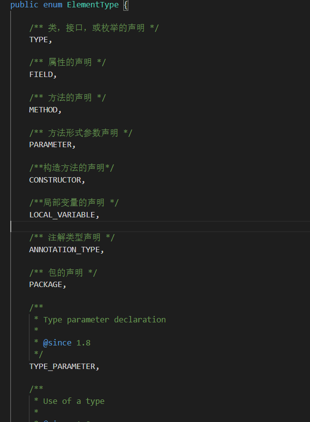 RetentionPolicy.RUNITIME:如果一个注解定义为这种类型,那么这个注解可以在运行期的加载阶段被加载到class文件中。那么程序运行阶段,我们可以反射得到这个注解,并通过判断是否有这个注解或这个注解中的属性值,从而执行不同的代码段。我么实际开发中用到的注解几乎都是这种RUNITIME类型。