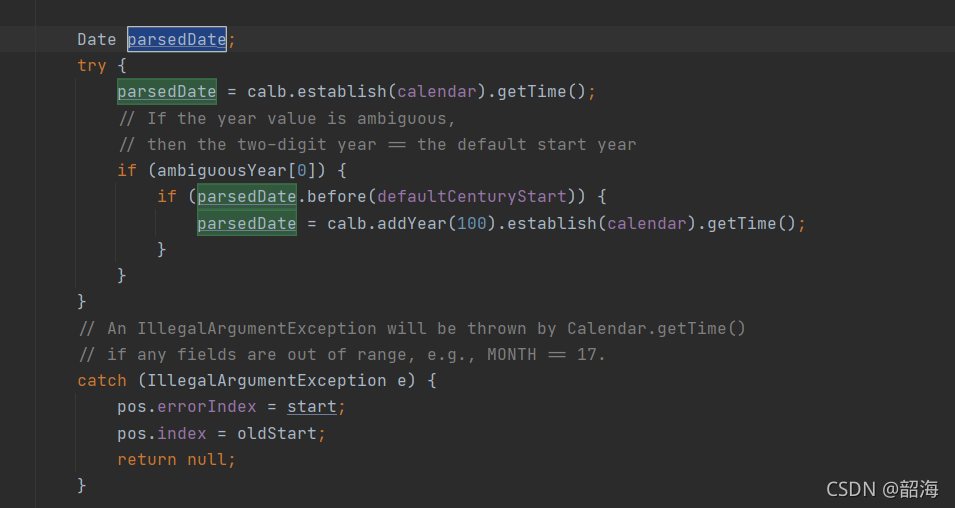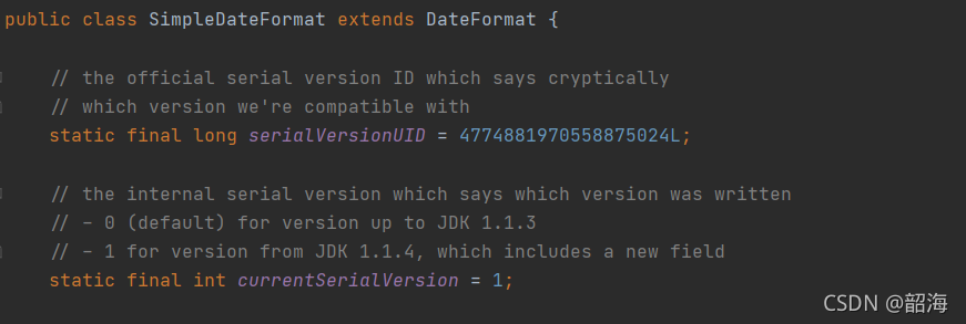 因为SimpleDateFoemat类继承了DateFormat,而DateFormat类中定义了一个成员变量calendar。我们的SimpleDateFormat类中的parse和format方法都用到了calendar