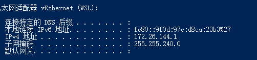 启动ssh后,可以使用ifconfig查看WSL的IP地址,如下