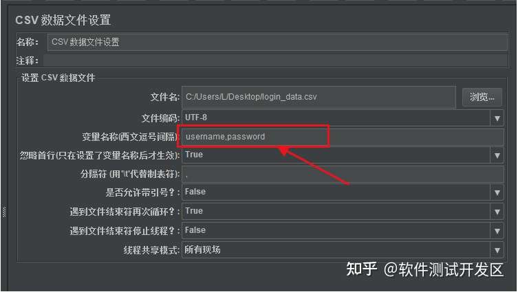 我们可以看到${变量名}中的引用变量名,是以CSV数据文件设置组件中变量名称中定义变量名为准。如果不在变量名称栏中定义任何内容,就以数据文件中的标题列名为引用变量名。