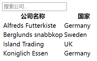 <input type="text" id="myInput" onkeyup="myFunction()" placeholder="搜索公司...">