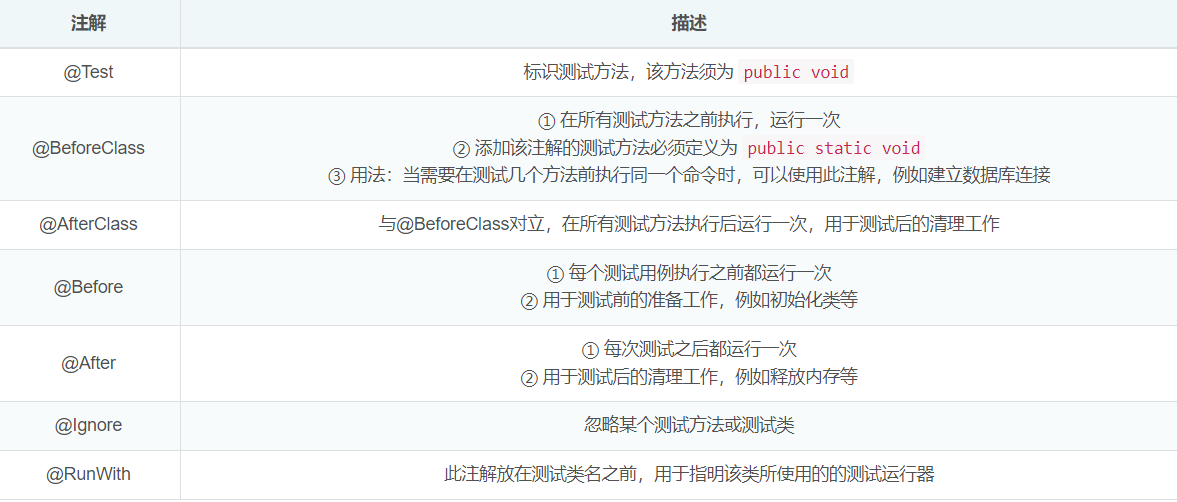类名:命名由 被测试类+Test 组成,例如 CalculateTest