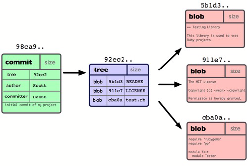 对于每个文件的每个版本(或是不同文件名但相同内容的文件),Git 只会存储一个 blob,而允许多个 commit tree 指向同一个 blob。 一个 commit 中与之前相比未发生变化的文件,无需重复存储。文件未发生变化,则后续多个版本始终指向同一个 blob;文件发生变化了,存储两份不同的 blob,两个版本指向不同的 blob。