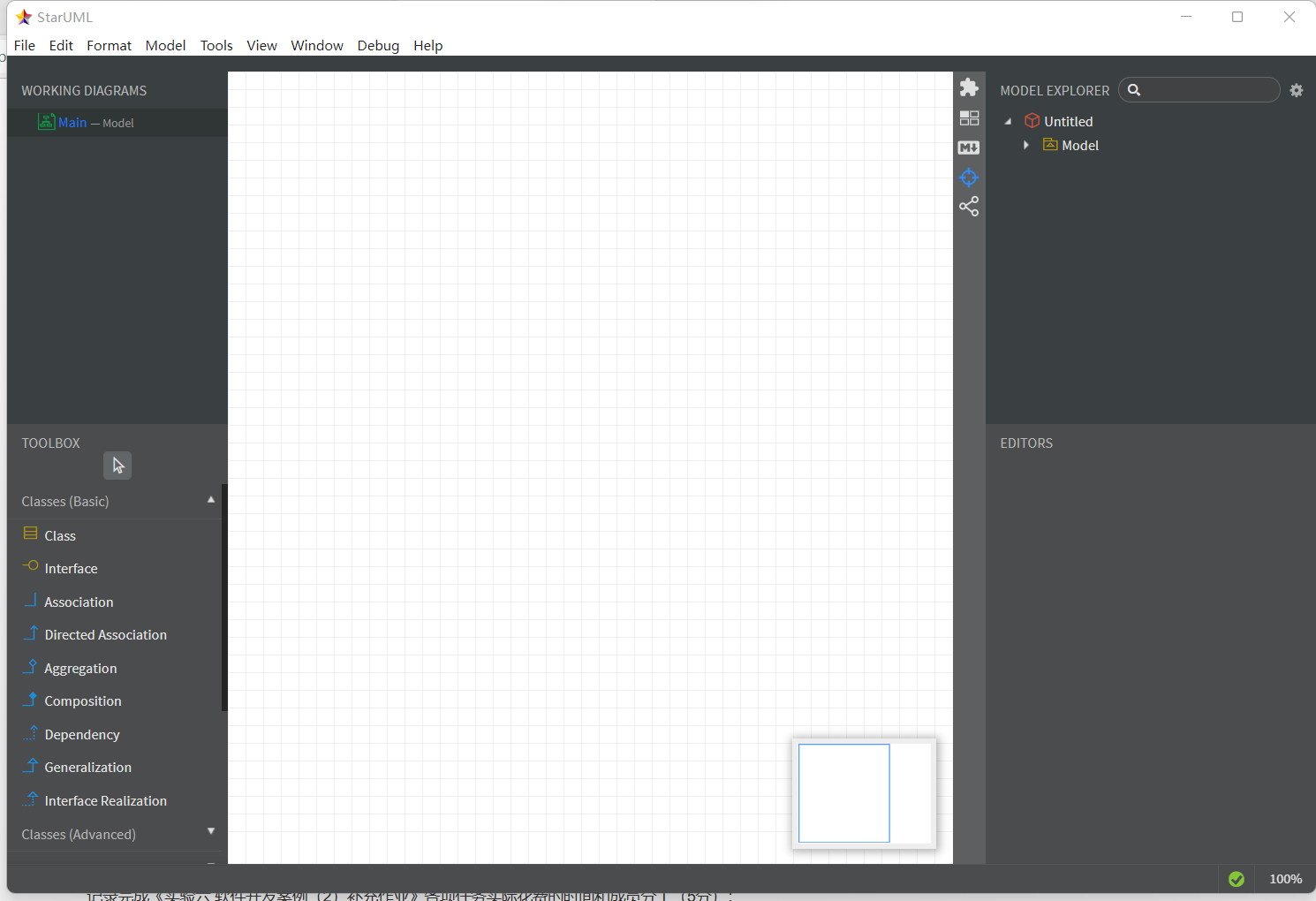 任务1 下载并安装StarUML,了解StarUML操作方法;提供StarUML主界面截图。