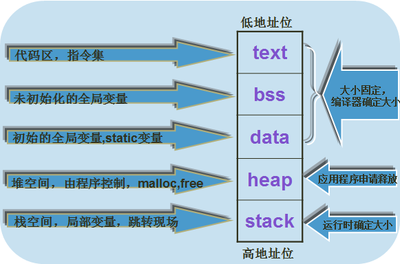 对于java堆内存设置,首先需要对java内存解构有所了解,对于linux平台,java的底层又是c写的,因此java内存结构又是在c的内存结构之上,所以我准备从c的内存结构讲起。