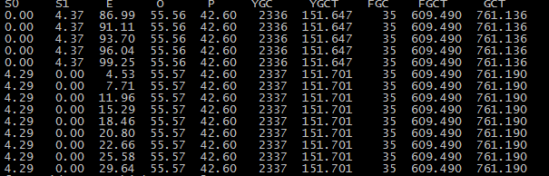 但是有的时候,新生代单次回收的时间不长,但时会出现连续回收的情况,这种方式也是不合理的,通常发生E区和S区比例不对和-XX:MaxTenuringThreshold=设置不合理,如下就是连续回收的情况: