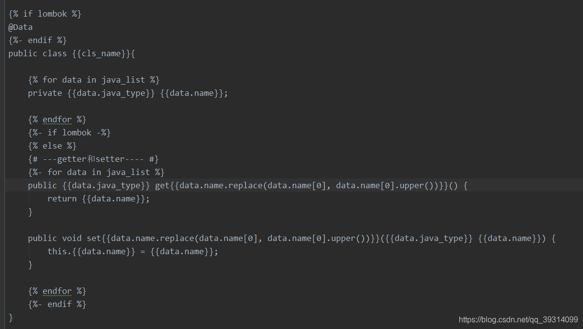 这是最早的方法,也是能想到最简单的,直接拼接字符串。后来在了解到一些模板引擎后,重写了一个用jinja2模板引擎做的生成器。查了一些资料发现模板引擎的原理是用正则匹配机制来做的,自定义一些标识符,用来作为语法使用。自己写类似的模板引擎也可以,但是略麻烦,就直接拿来用了。贴段代码: