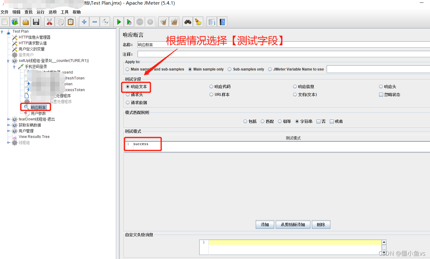 2、添加断言插件 ,根据情况选择校验的断言字段