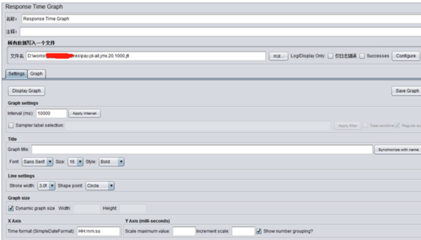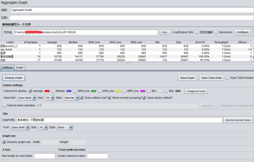 可以看到,上半部分跟聚合报告是一样的,下半部分分为Settings和Graph,一个用来编辑样式,一个用来展示。