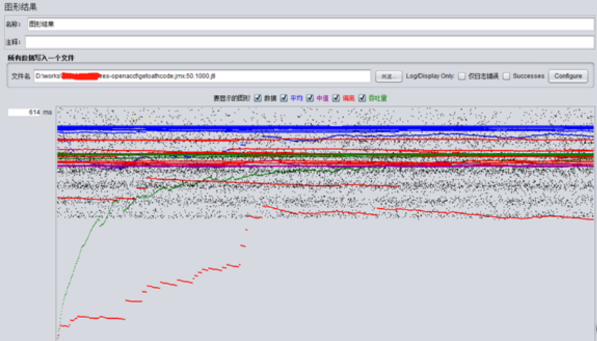 1、乍一看是不是觉得很乱?这是因为默认把所有的图项都展示了,包括数据、平均、中值、偏离、吞吐量,可以根据需要分别显示。