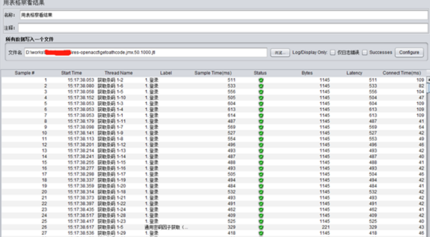 这个listener用来显示每个请求的响应头信息,我觉得它最好用的一点就是可以按先后顺序显示每个请求的开始时间、耗时、响应状态等,方便进行结果分析。