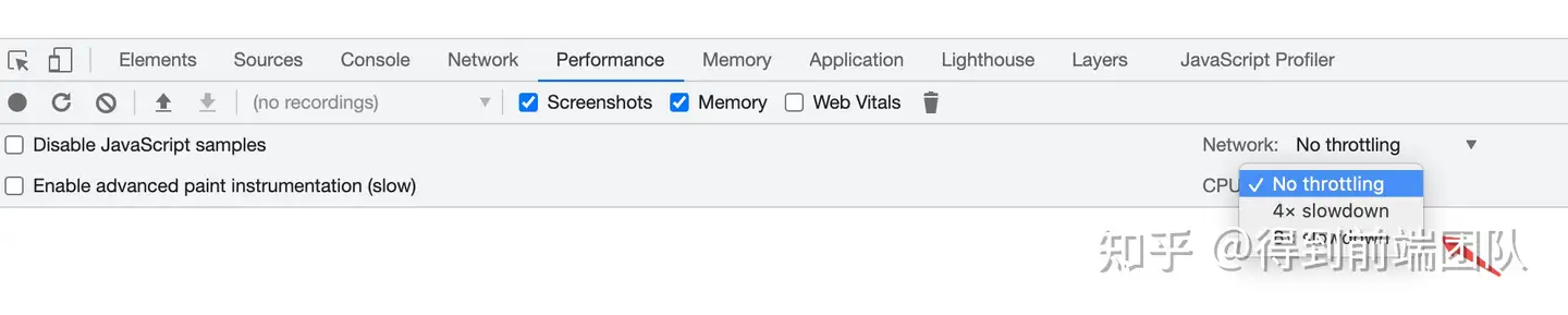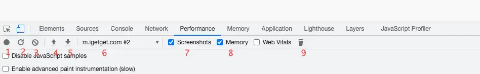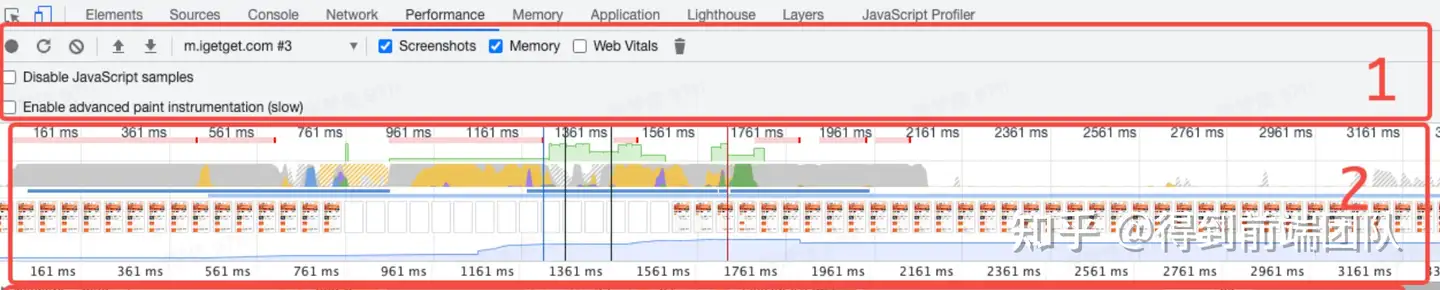 Performance- 性能面板:页面各项性能指标的火焰图,这里能看到白屏时间、FPS、资源加载时间线、内存变化曲线等等信息Memory- 内存面板 :可以记录某个时刻的页面内存情况,一般用于分析内存泄露Layers- 展示页面中的分层情况