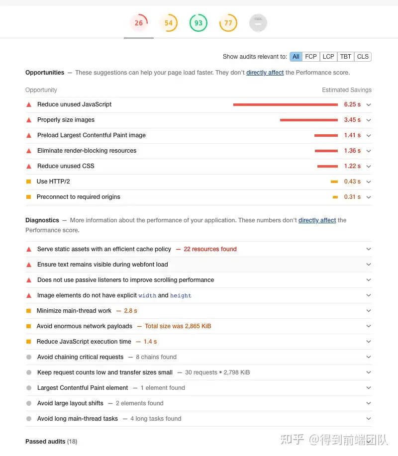 Audits通过一系列的规则来对网页进行评估分析,最终给出一份评估报告。