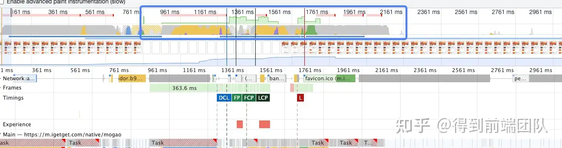 通过观察发现引起fps下降的主要原因是图片的加载。整个渲染卡顿持续时间较长,但影响首屏渲染时间较短。