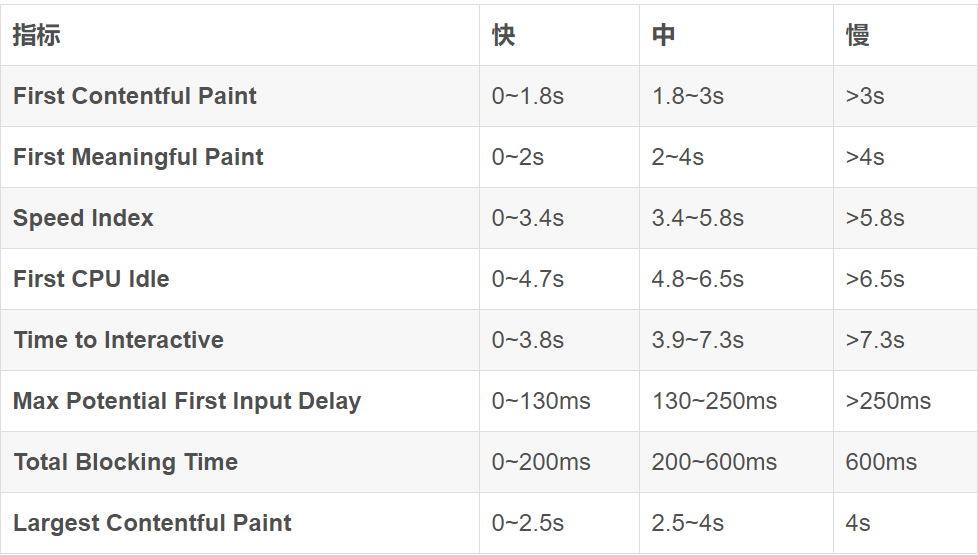 了解了页面的加载过程,我们就需要针对每个过程制定指标了,这样才能衡量性能好不好。