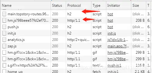 其中 h2 是指 HTTP2 协议,http/1.1 则是指 HTTP1.1 协议。