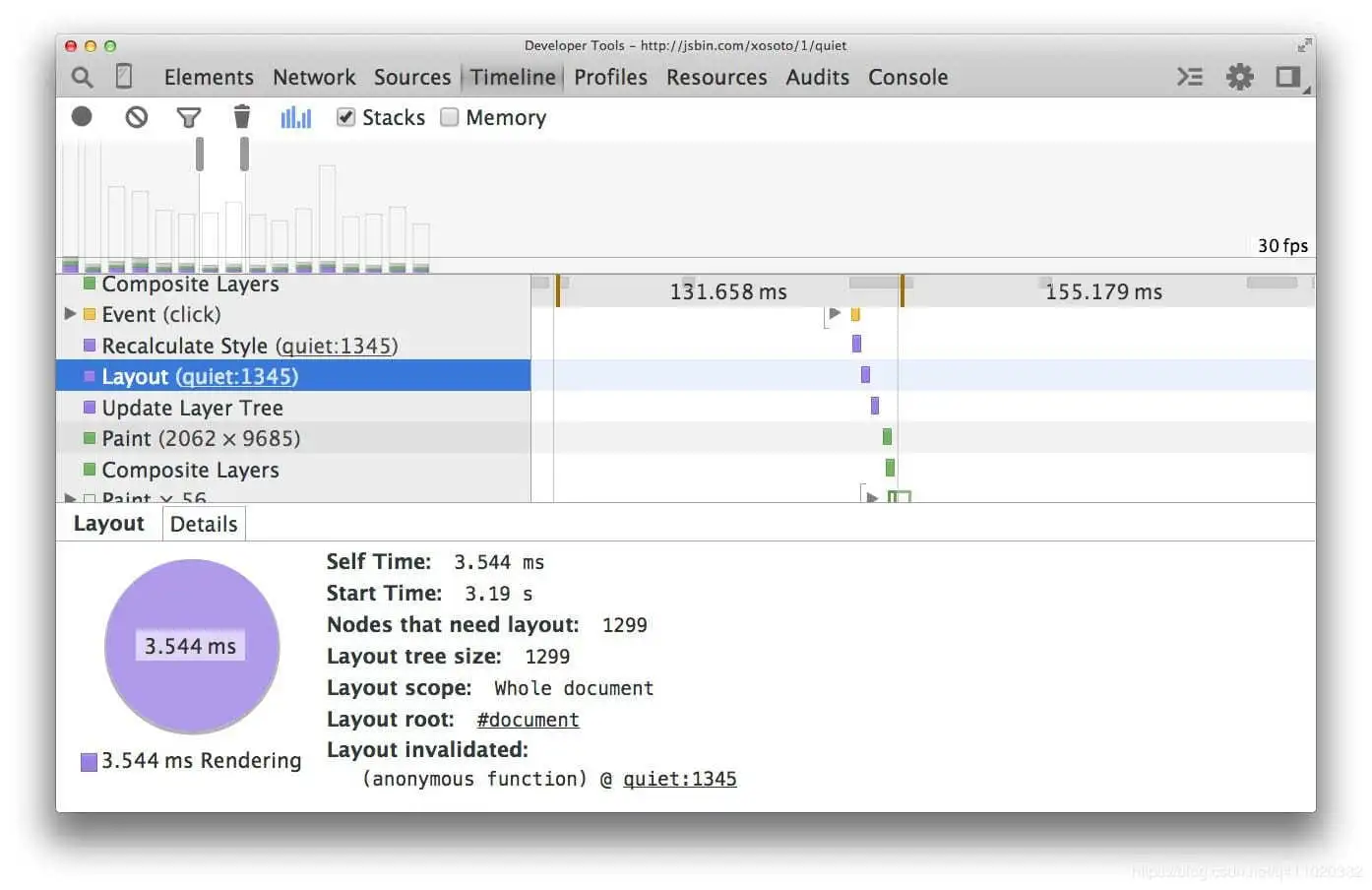 配合 chrome 的开发者工具,我们可以查看网站在运行时的性能。