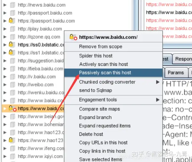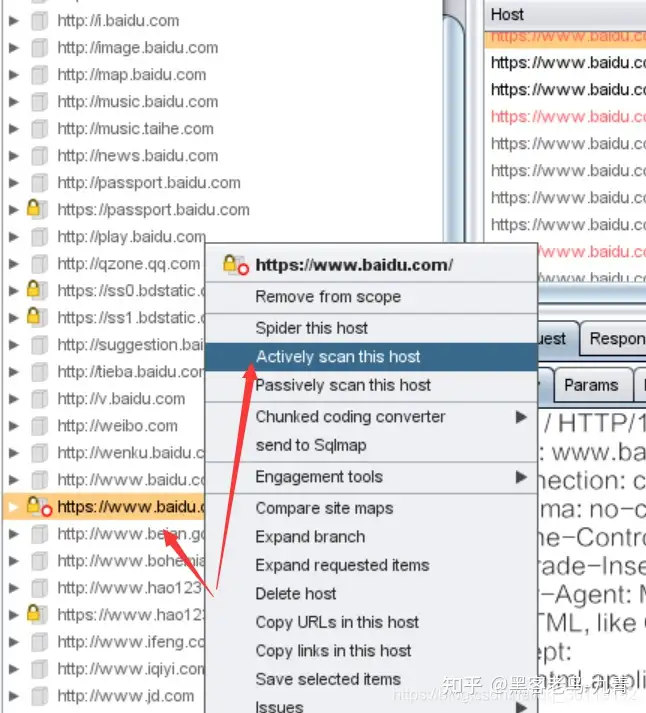 点击Target——>Site map,右键我们需要检测的网站——>Actively scan this host