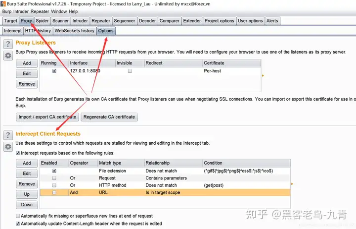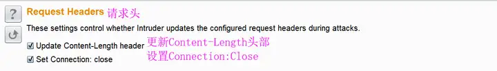 Request Headers: 这些设置控制是否在Intruder是否更新配置请求头