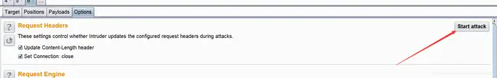 如果选中Set Connection: close框,则 BurpSuite 会添加或更新 HTTP 消息头的连接来请求在每个请求后已关闭的连接。在多数情况下,这个选项会让攻击执行得更快。