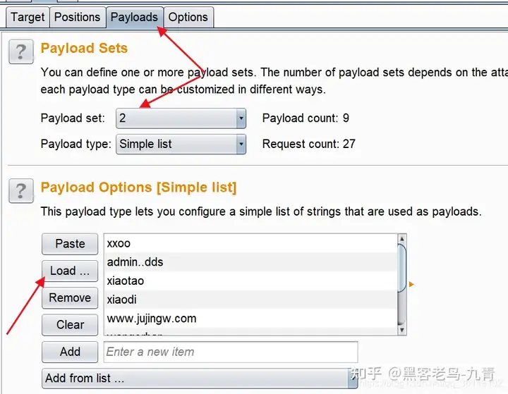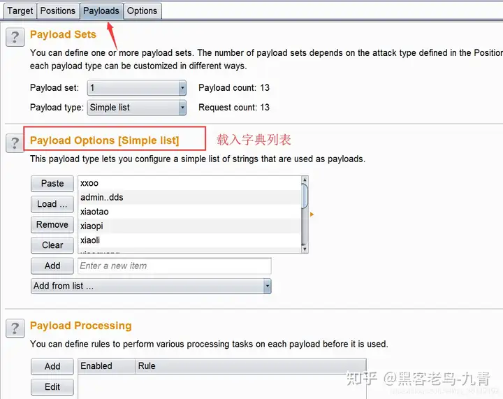 Payload Options[Simple list]:该选项会根据Payload Sets的设置而改变