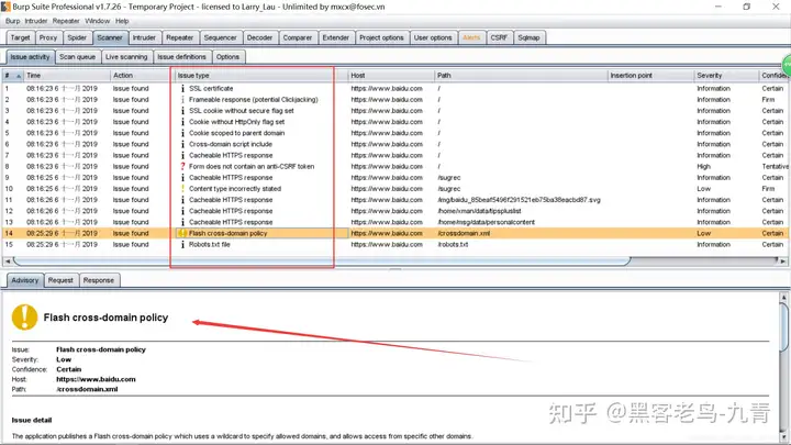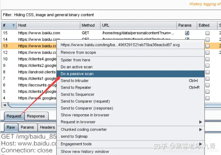 当使用被动扫描时,BurpSuite不会重新发送新的请求,只是对已经存在的请求和应答进行分析。