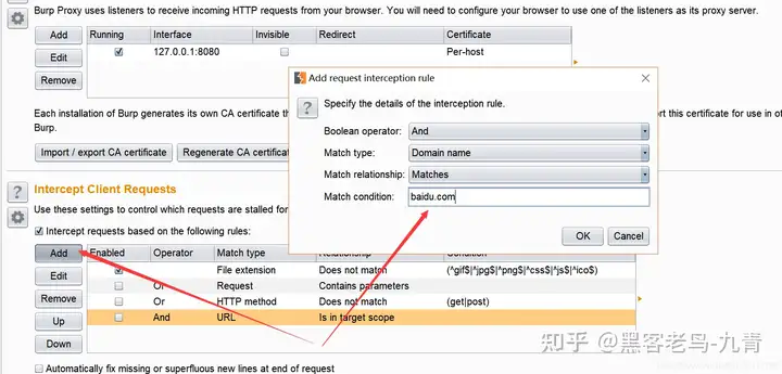 然后点击Add,比如我们只想拦截http://baidu.com域名下的所有子域名的数据包,我们可以如下。