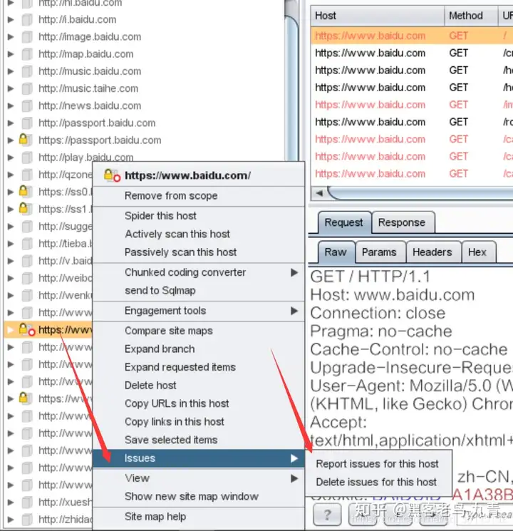 当扫描完成后,我们可以在Target标签的Site map下右键该网站,Issue——>Report issues for this host,来导出扫描报告