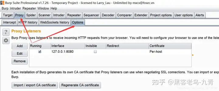 BurpSuite默认使用8080端口作为代理,当然,你也可以自己修改端口号