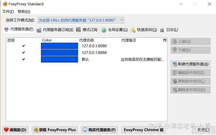 关于浏览器端怎么设置代理我就不讲了,推荐一款Firefox浏览器中最好用的代理插件FoxyProxy Standard
