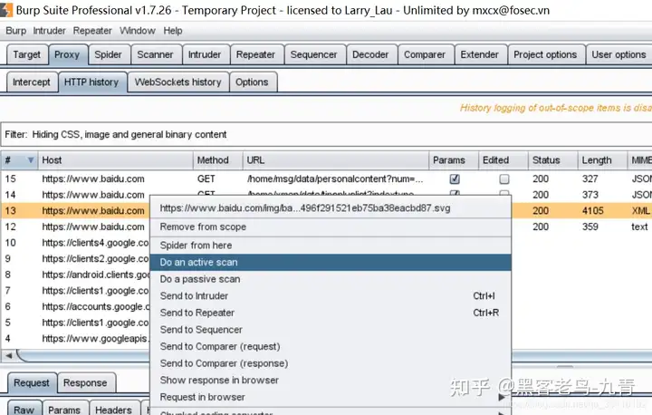 也可以在Proxy——>HTTP History,右键需要检测的网站——>Do an active scan。
