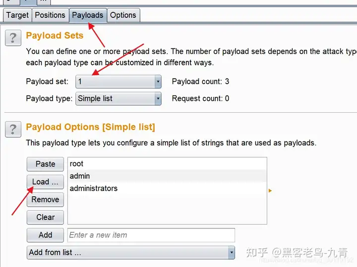 然后去设置我们的payload了,因为爆破点有两处,所以,两处都得设置payload