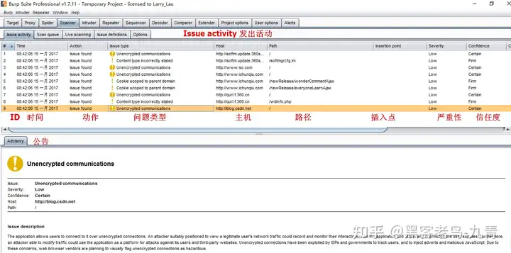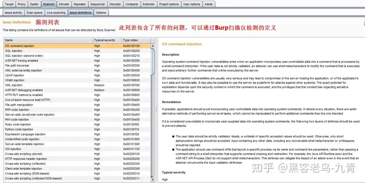 Issue Definitions 漏洞列表,列出了burp可以扫描到的漏洞详情