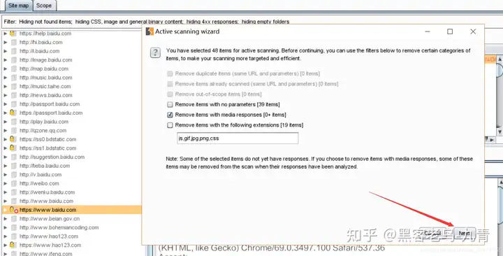 此时弹出过滤的设置,保持默认选项,Next——>Ok。即可扫描该网站。
