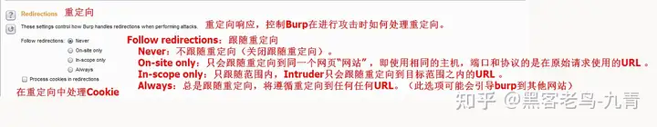 Redirections: 重定向响应,控制Burp在进行攻击时如何处理重定向