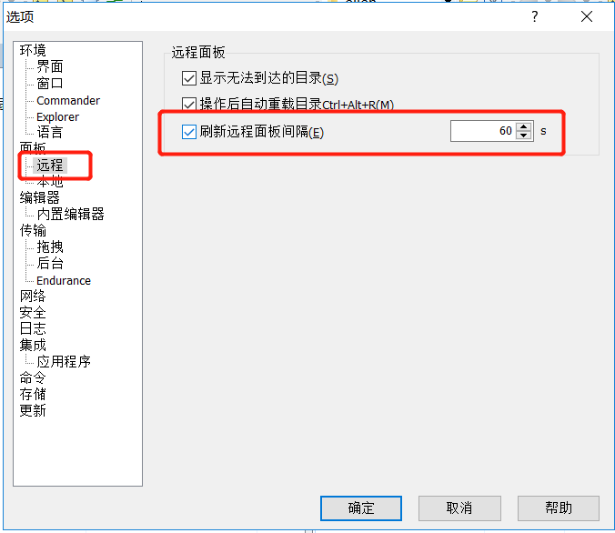 面板 -> 远程 -> 刷新远程面板间隔