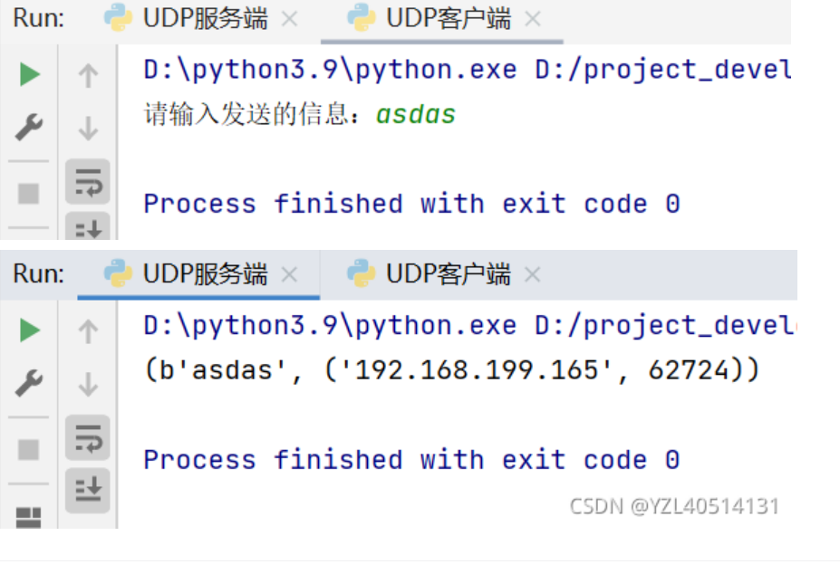 # 收到的每一个数据报,里面是一个元组,第一个值是数据内容,第二个值是源地址