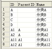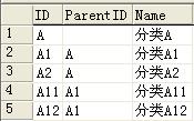我想查出如下数据,只查出"分类A"及其下面的所有子分类的数据