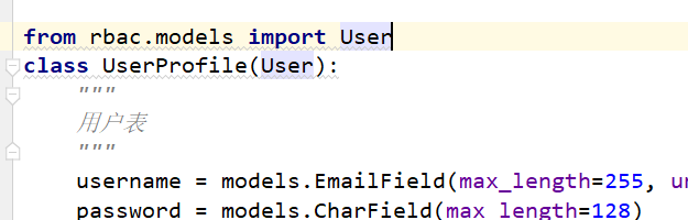 在要应用项目的models中的用户表继承这个rbac中的User表