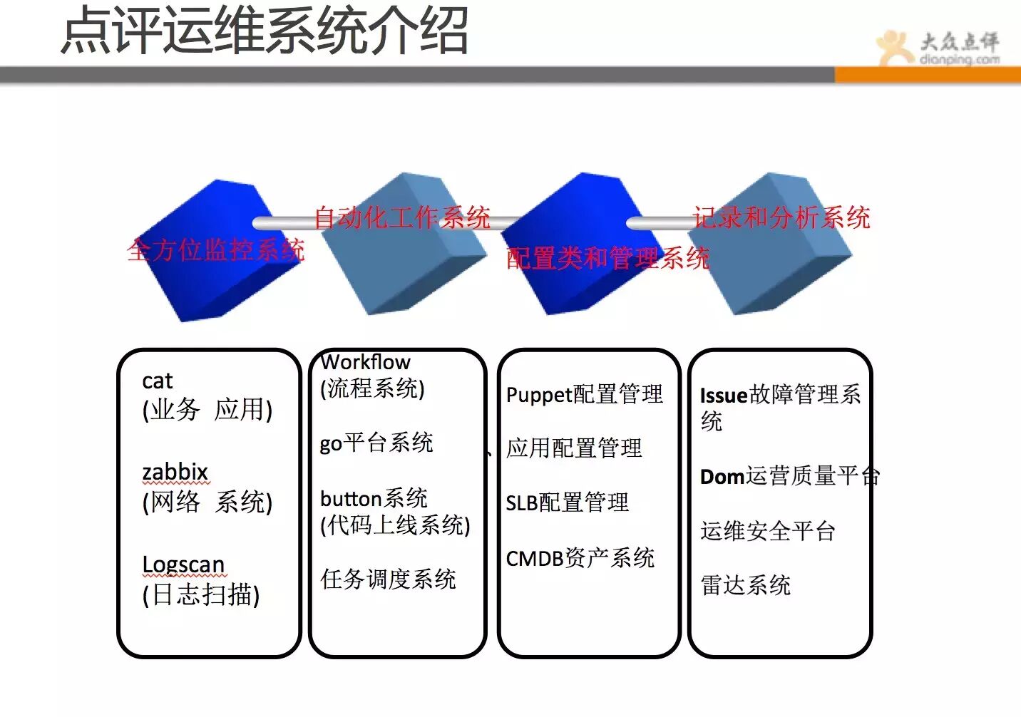 点评的运维和平台架构组做了很多实用的工具,这些工具组成了点评的整体运维体系。